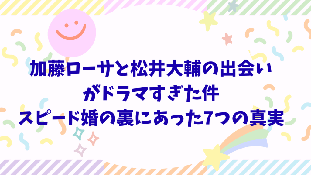 加藤ローサと松井大輔の出会いがドラマすぎた件|スピード婚の裏にあった7つの真実