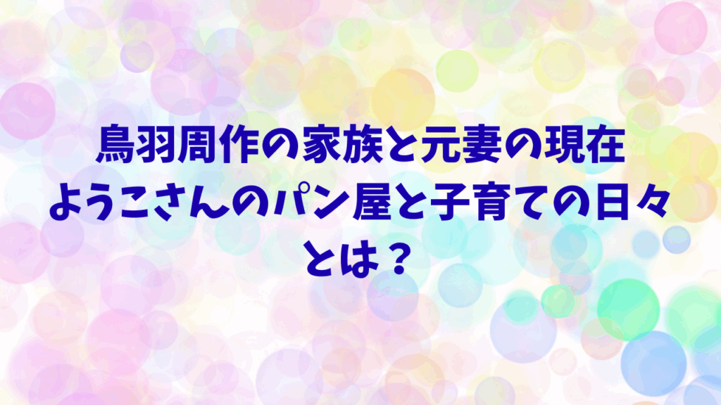 鳥羽周作の家族と元妻の現在|ようこさんのパン屋と子育ての日々とは?
