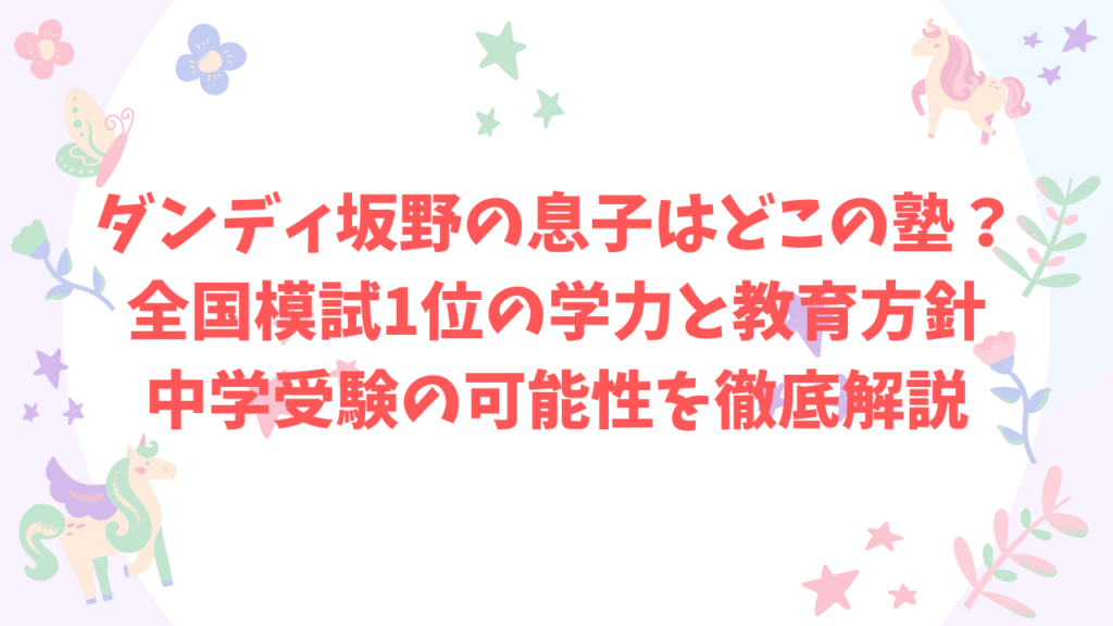 ダンディ坂野の息子はどこの塾?全国模試1位の学力と教育方針、中学受験の可能性を徹底解説
