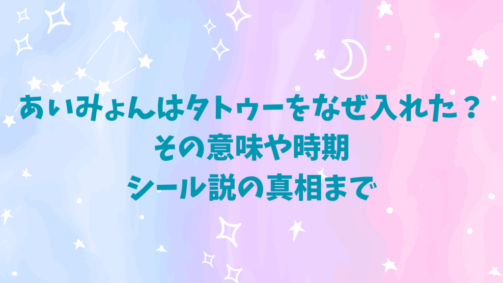 あいみょんのタトゥーが注目される理由と経緯 あいみょんのタトゥーが注目される理由と経緯について解説します。 それでは、詳しく見ていきましょう。 初めて話題になった時期 あいみょんのタトゥーらしき模様が最初にファンの間で話題になったのは、2023... -
