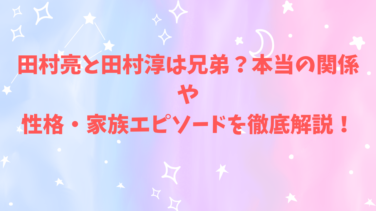 田村亮と田村淳は兄弟なのか?気になる関係性を徹底解説します。