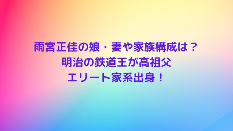 雨宮正佳の娘・妻や家族構成は?明治の鉄道王が高祖父のエリート家系!と題しまして