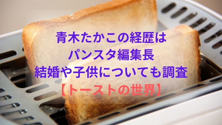 青木たかこ(トースターの世界)の経歴はパンスタ編集長!結婚や子供についても調査!について詳しく紹介していきました。