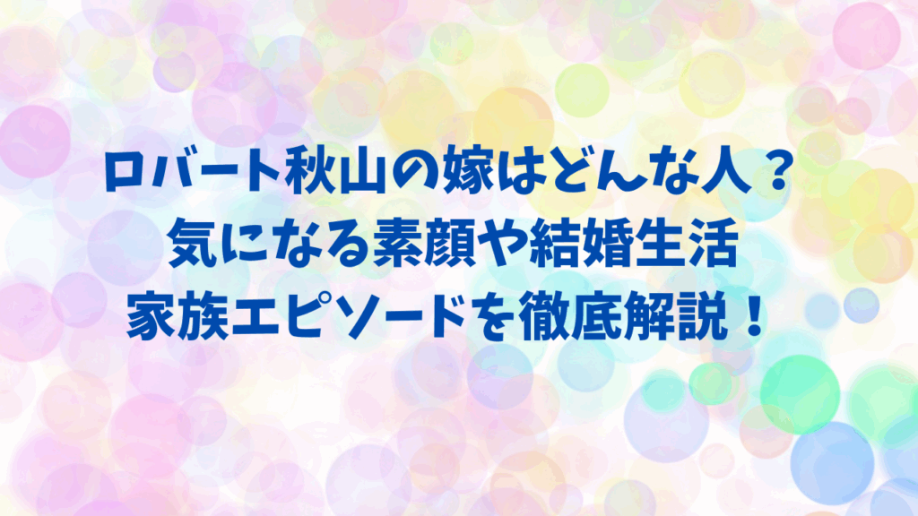 ロバート秋山の嫁はどんな人?気になる素顔を徹底解説 ロバート秋山の嫁はどんな人?気になる素顔を徹底解説します。 プロフィールや経歴まとめ 馴れ初めと結婚のきっかけ 家族構成や子どもについて ロバート秋山と嫁のエピソード ロバート秋山さんといえ... -