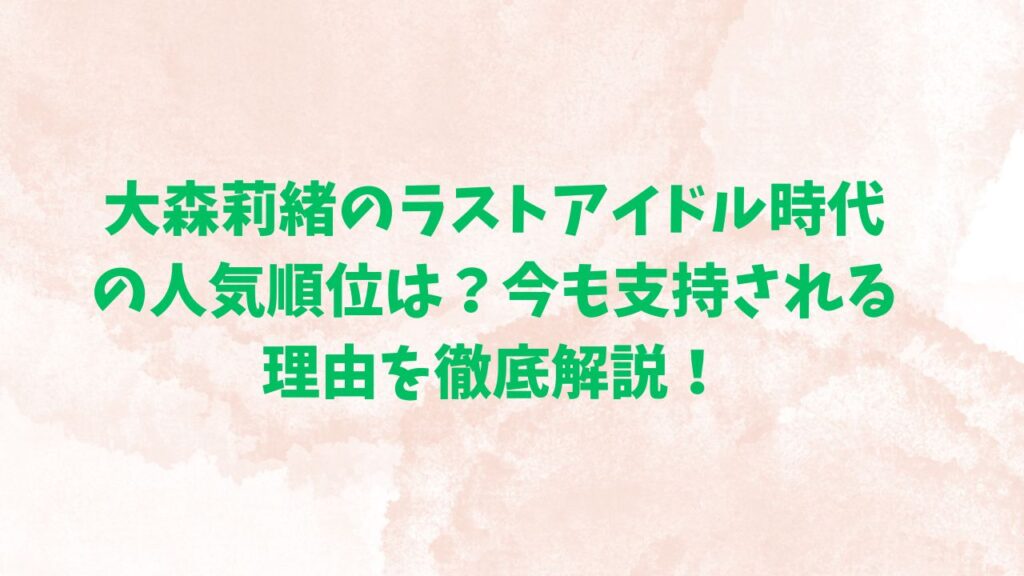 大森莉緒のラストアイドル時代の人気順位は?今も支持される理由を徹底解説!