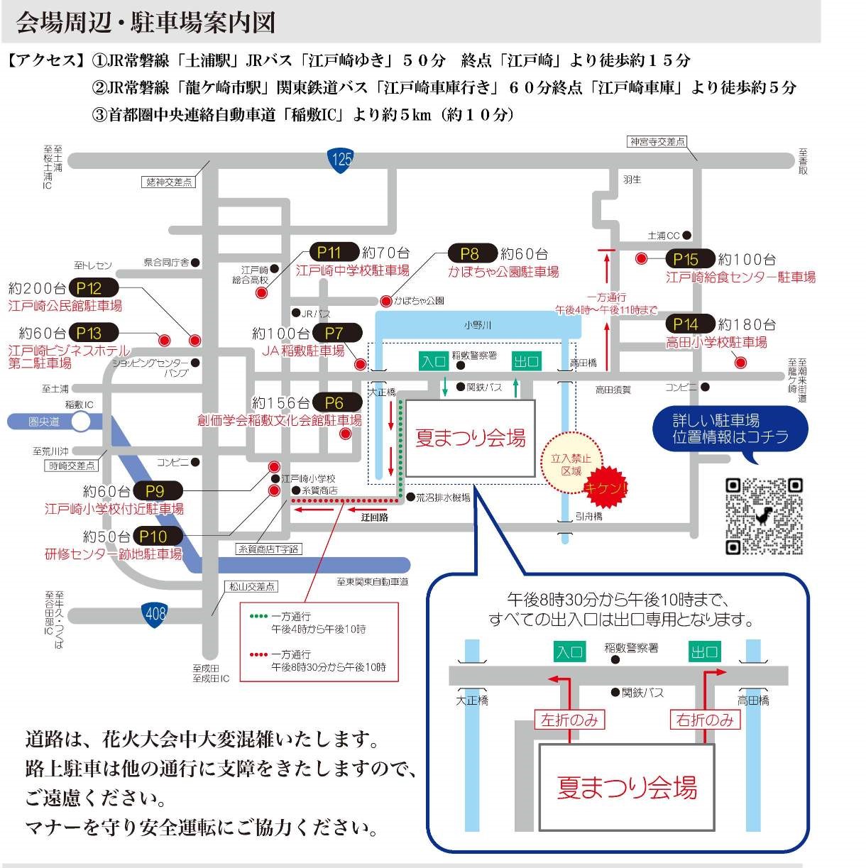 - 江戸崎小学校付近駐車場(打ち上げ会場から約900m)約60台収容