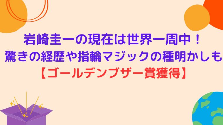 岩崎圭一の現在は?ゴールデンブザー獲得の経歴や指輪マジックの種明かしも調査!と題しまして世界を人力で旅をしている「マジシャン」岩崎圭一さんについて詳しくご紹介しました。