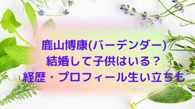 日本一のバーテンダーと呼ばれる鹿山博康さんがご結婚されて妻や子供がいるのか?また経歴プロフィール、ご実家や生い立ちについて紹介しました。
