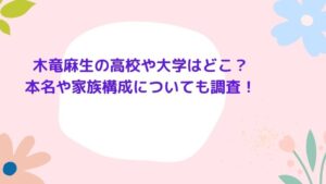 木竜麻生の高校や大学はどこ?本名や家族構成についても調査! 仲野太賀さんとの熱愛報道がでた木滝麻生さんは、ドラマや映画、CMなど様々なジャンルで活躍している女優さんです。 透明感があってとてもきれいな方ですよね。 そんな...