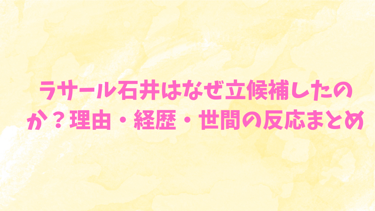 ラサール石井が立候補を決めた理由を徹底解説します。