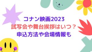 コナン映画2023試写会や舞台挨拶はいつ?申込方法や会場情報も 子供から大人まで楽しめる大人気のアニメ映画「名探偵コナン黒鉄の魚影(くろがねのサブマリン)」が2023年4月14日(金)に公開予定となっています。   黒鉄の魚影(く...