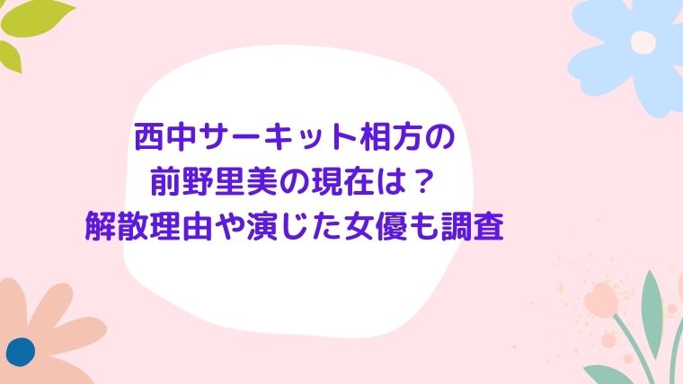 西中サーキット相方の前野里美の現在は?解散理由や演じた女優も調査!について詳しく紹介していきました。