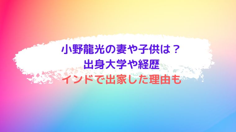 小野龍光の妻や子供は?出身大学や経歴やインドで出家した理由も!について詳しく紹介していきました。