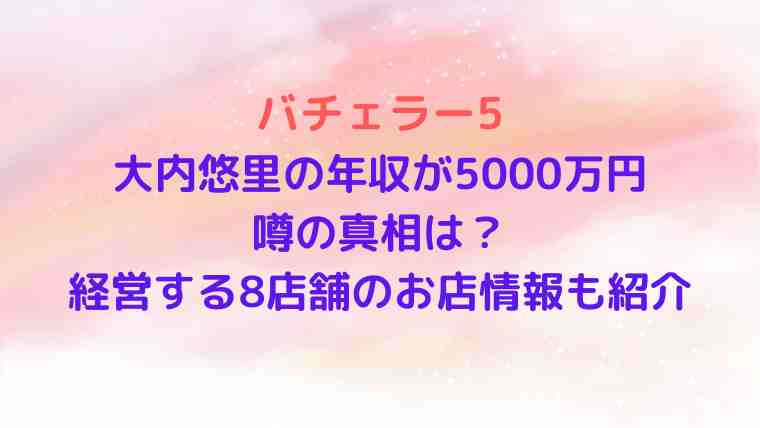 […] 大内悠里の年収が5000万円との噂も?経営する8店舗のお店情報も紹介 […]