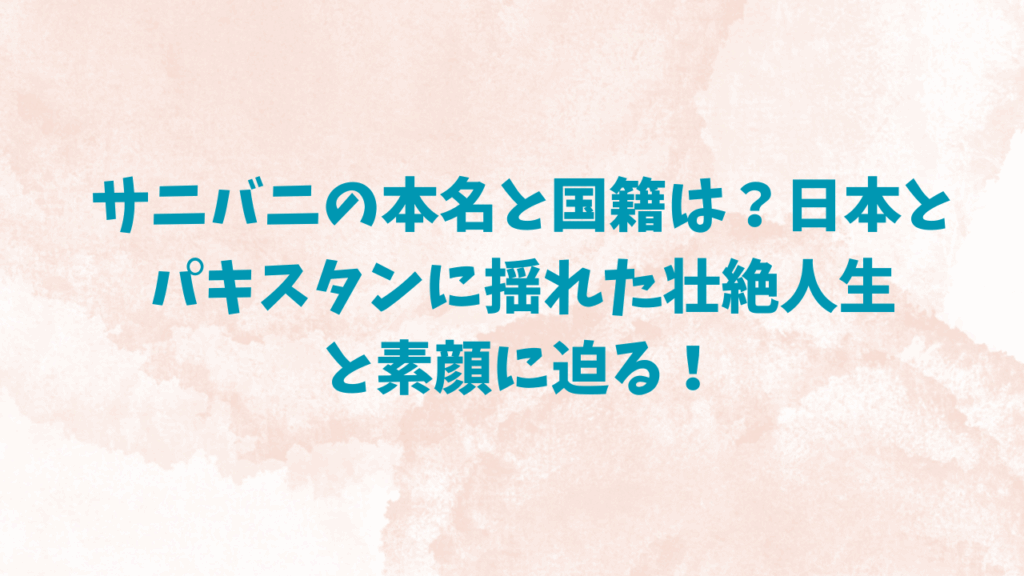 サニバニの本名と国籍は?日本とパキスタンに揺れた壮絶人生と素顔に迫る!