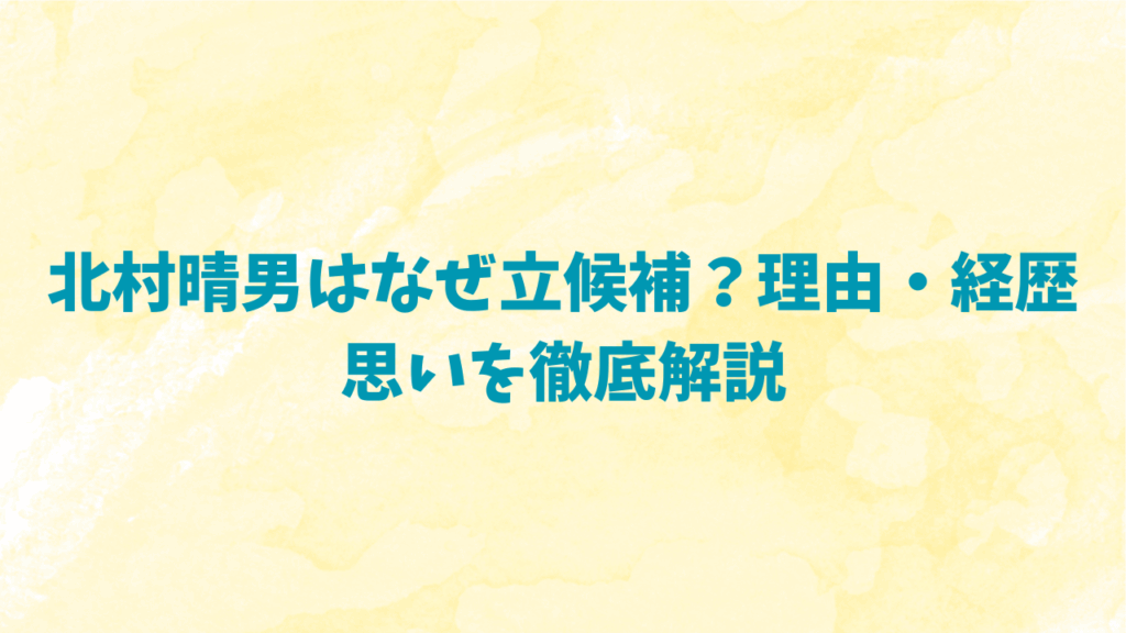 北村晴男さんがなぜ立候補を決断したのか、その理由や背景、そして彼のこれまでの経歴や世間の声まで、徹底的に解説します。テレビでおなじみの弁護士がなぜ政界に挑戦したのか、彼の思い・政策・人柄に迫ります。北村晴男さんの立候補に興味がある方は、... -
