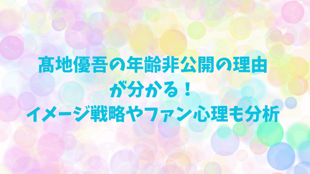 髙地優吾の年齢非公開の理由が分かる!イメージ戦略やファン心理も分析