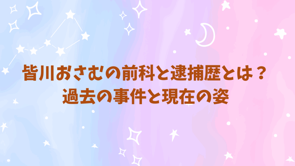 皆川おさむの前科と逮捕歴とは?過去の事件と現在の姿