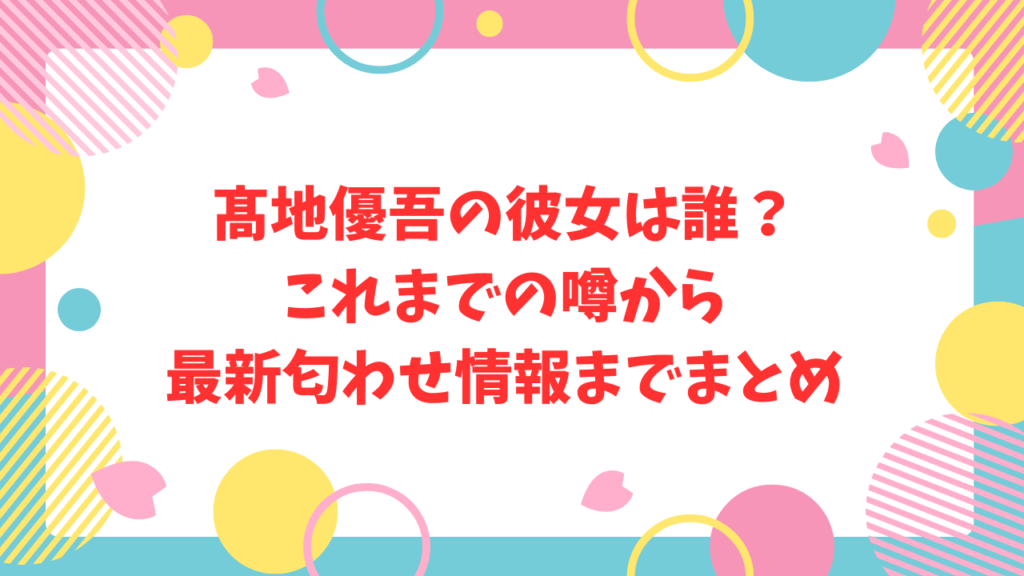 髙地優吾の彼女は誰?これまでの噂から最新匂わせ情報までまとめ