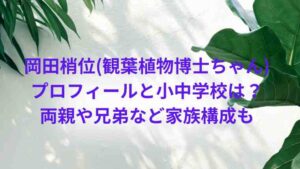 岡田梢位(観葉植物博士ちゃん)のプロフィールと小中学校は?両親や兄弟など家族構成も 2023年9月30日の18時56分からテレビ朝日系列で放送される「博士ちゃん」にて、観葉植物博士である岡田梢位さんが出演します。   自宅で約400種類もの観葉植物を育...