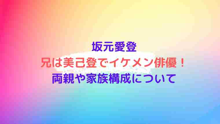 坂元愛登さんのお兄さんはどれくらいイケメンなのか、両親はどのような方なのかなど気になりますよね?