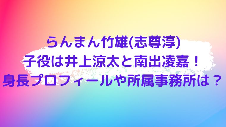 らんまん竹雄(志尊淳)の子役は井上涼太と南出凌嘉!身長プロフィールや所属事務所はどこ?について詳しく紹介していきました。