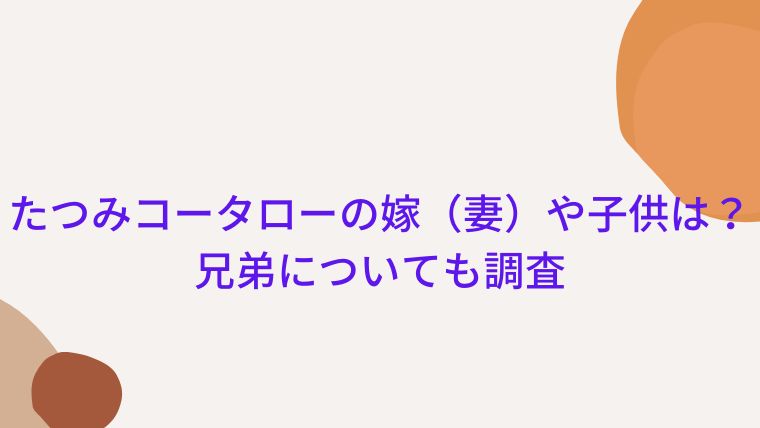 たつみコータローの嫁(妻)や子供はいる?兄弟についても調査について詳しく紹介していきました。