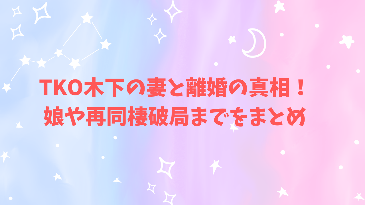 TKO木下の現在と妻をめぐる新たな話題について紹介します。