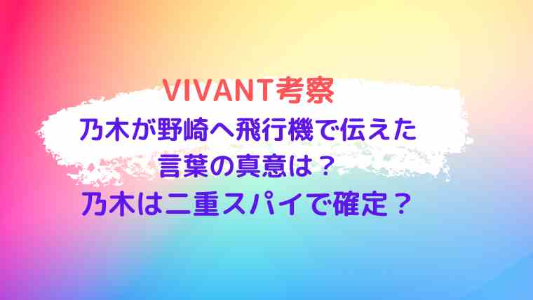 VIVANT考察!飛行機の中で野崎にいった言葉の意味は?乃木は二重スパイで確定?について詳しく紹介していきました。