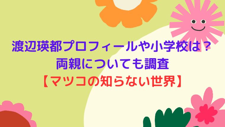 渡辺瑛都のプロフィールや小学校はどこ?両親やおススメグルメも【マツコの知らない世界】と題しまして
